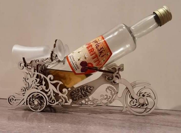 Okrasni motor kot držalo za žgano pijačo in dva kozarčka. Primerno za različne priložnosti (obletnice, rojstni dan..)